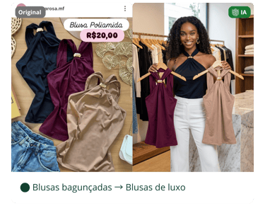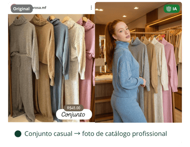 Crie imagens de alto nível para sua loja usando inteligência artificial e aumente suas vendas com conteúdo profissional.