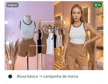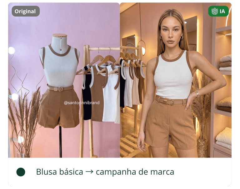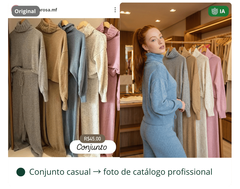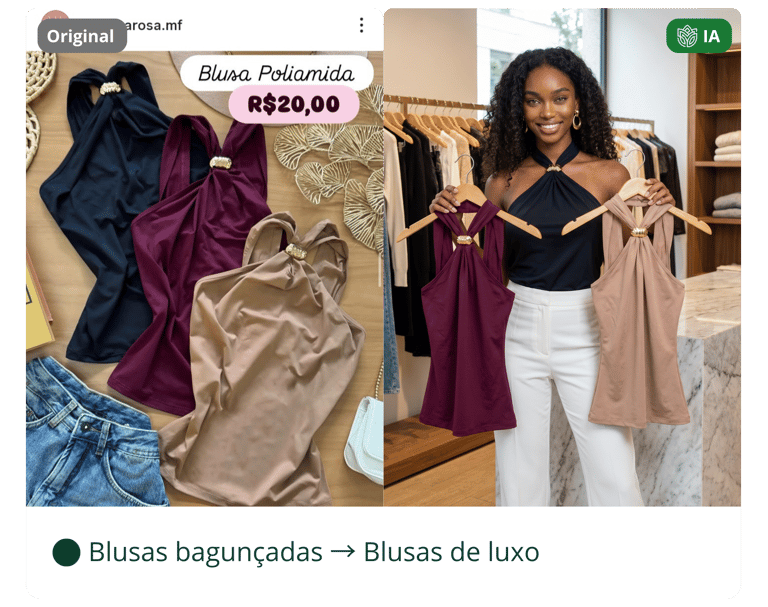 Enviou uma foto simples da peça? Devolvemos uma imagem digna de campanha de marca.